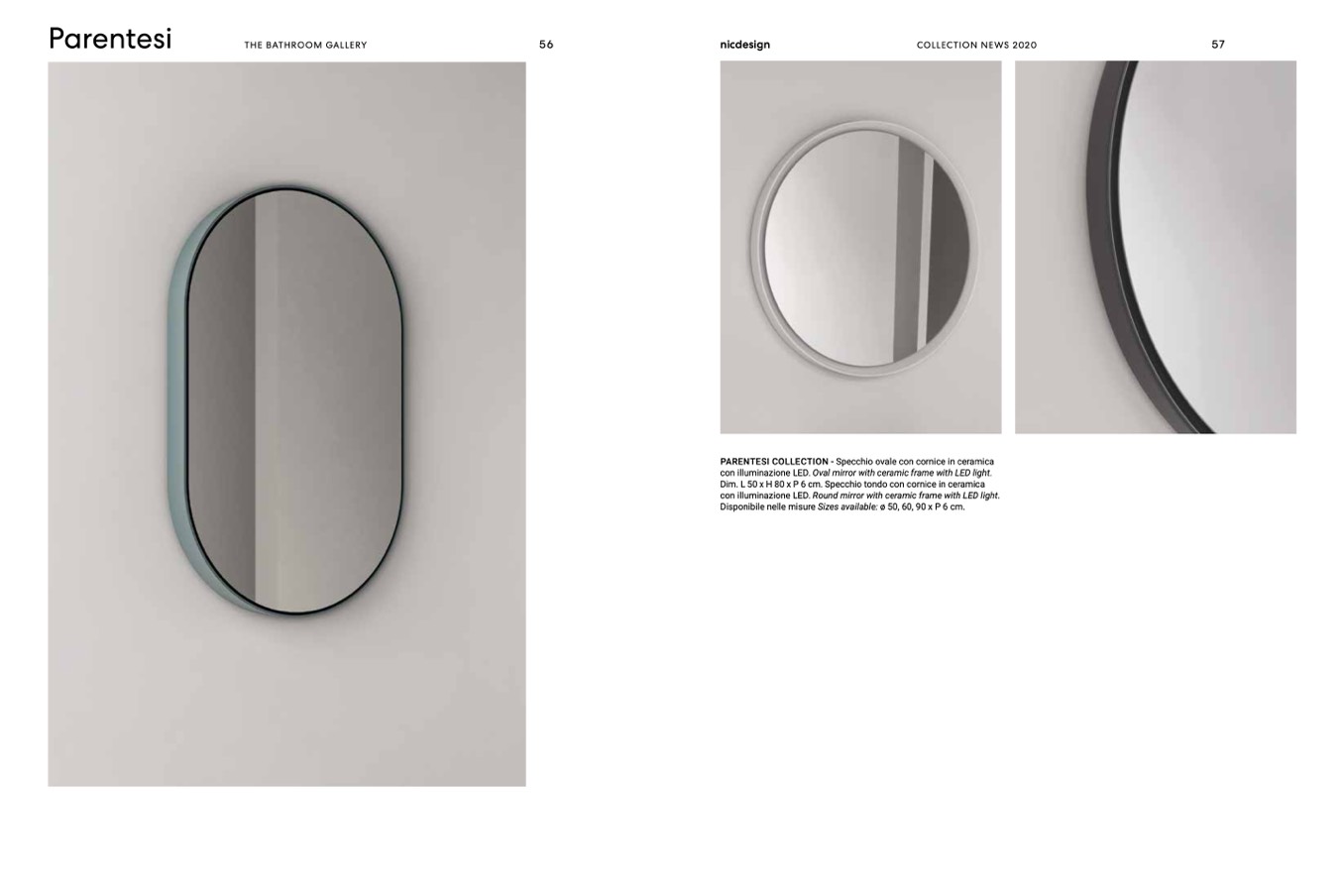 con illuminazione LED. Oval mirror with ceramic frame with LED light.