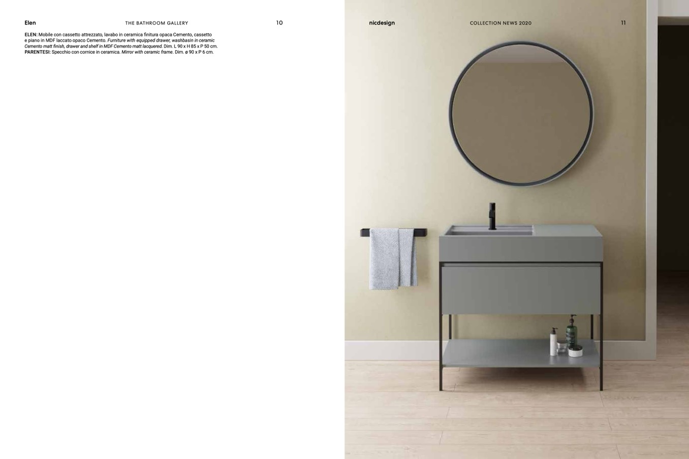 e piano in MDF laccato opaco Cemento. Furniture with equipped drawer, washbasin in ceramic