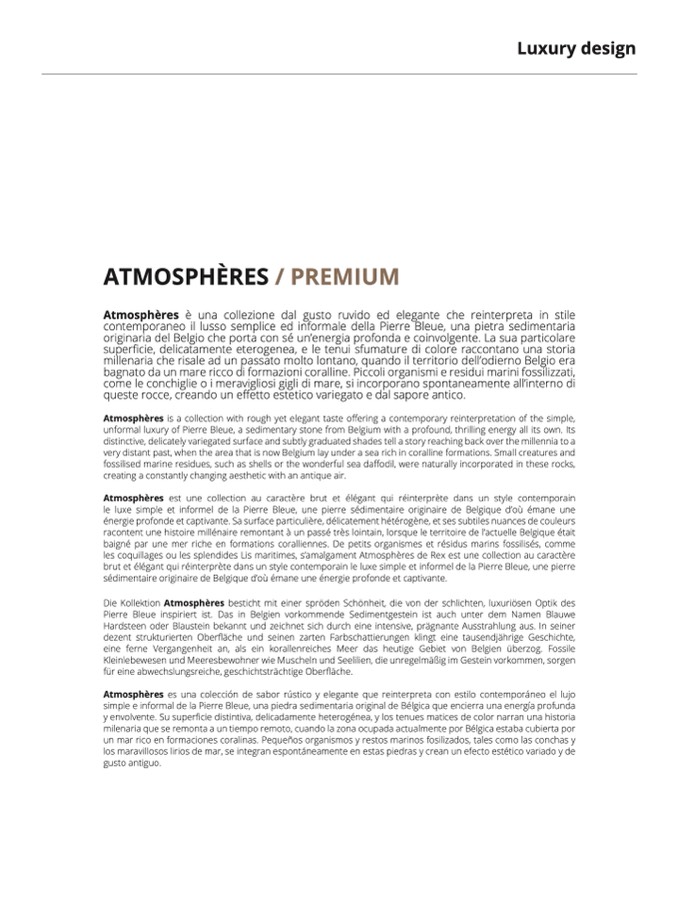 Atmosphères es una colección de sabor rústico y elegante que reinterpreta con estilo contemporáneo el lujo