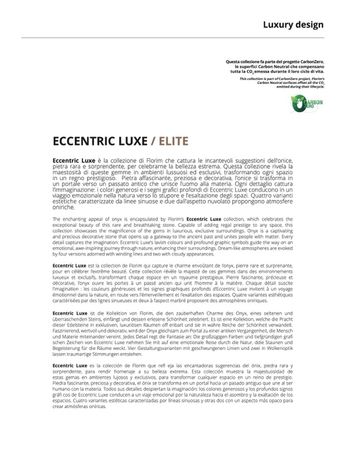 Eccentric Luxe es la colección de Florim que refl eja las encantadoras sugerencias del ónix, piedra rara y