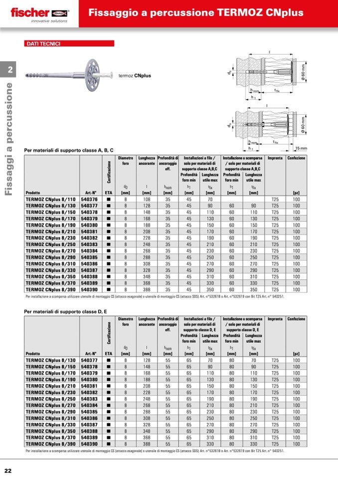 Per installazione a scomparsa utilizzare utensile di montaggio CS (attacco esagonale) o utensile di montaggio CS (attacco SDS) Art. n°532618 o Art. n°532619 con Bit T25 Art. n° 540251.