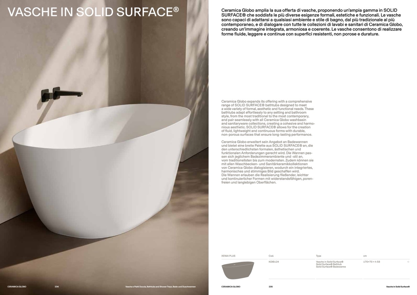 SURFACE® che soddisfa le più diverse esigenze formali, estetiche e funzionali. Le vasche