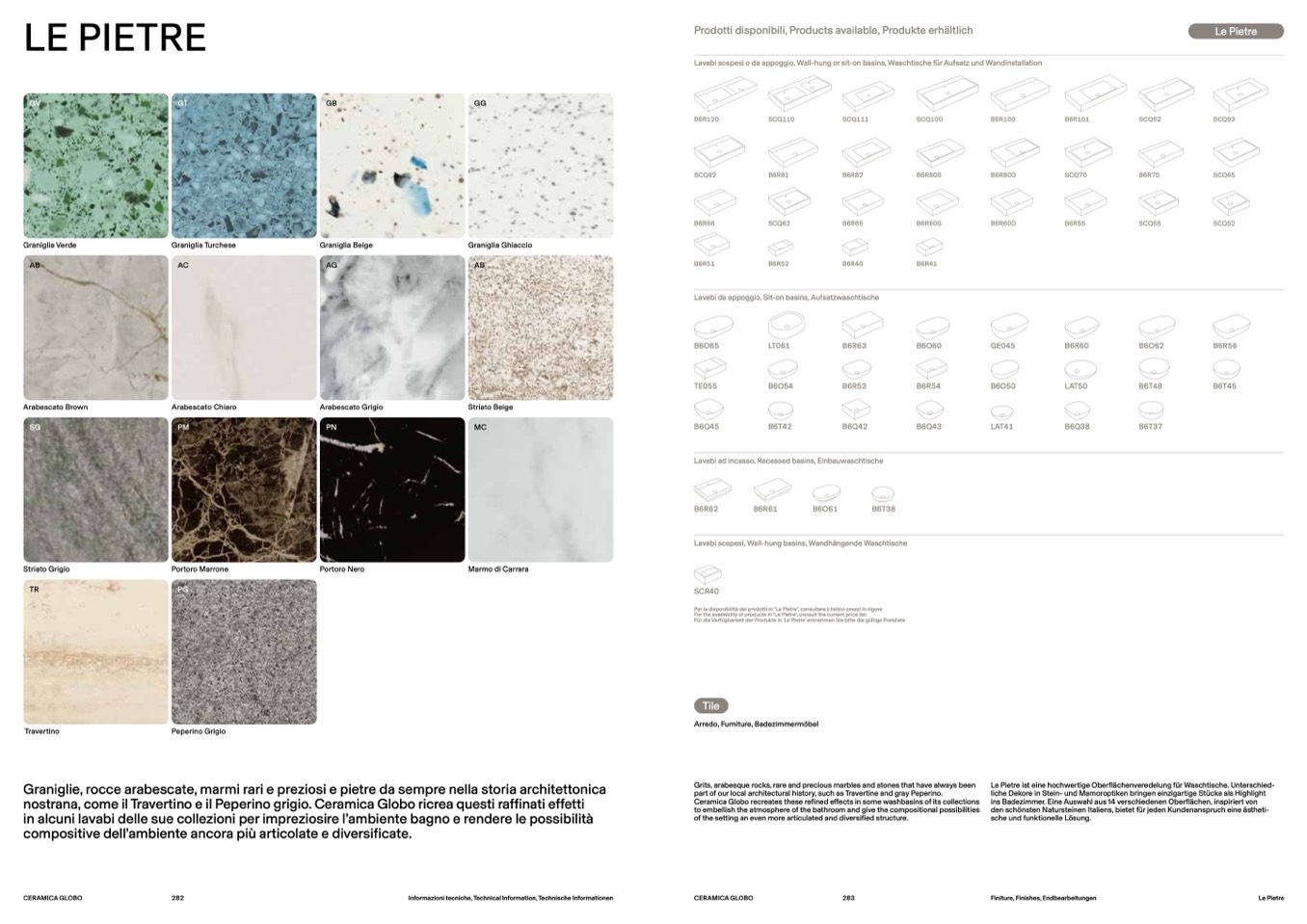 Für die Verfügbarkeit der Produkte in 'Le Pietre' entnehmen Sie bitte die gültige Preisliste