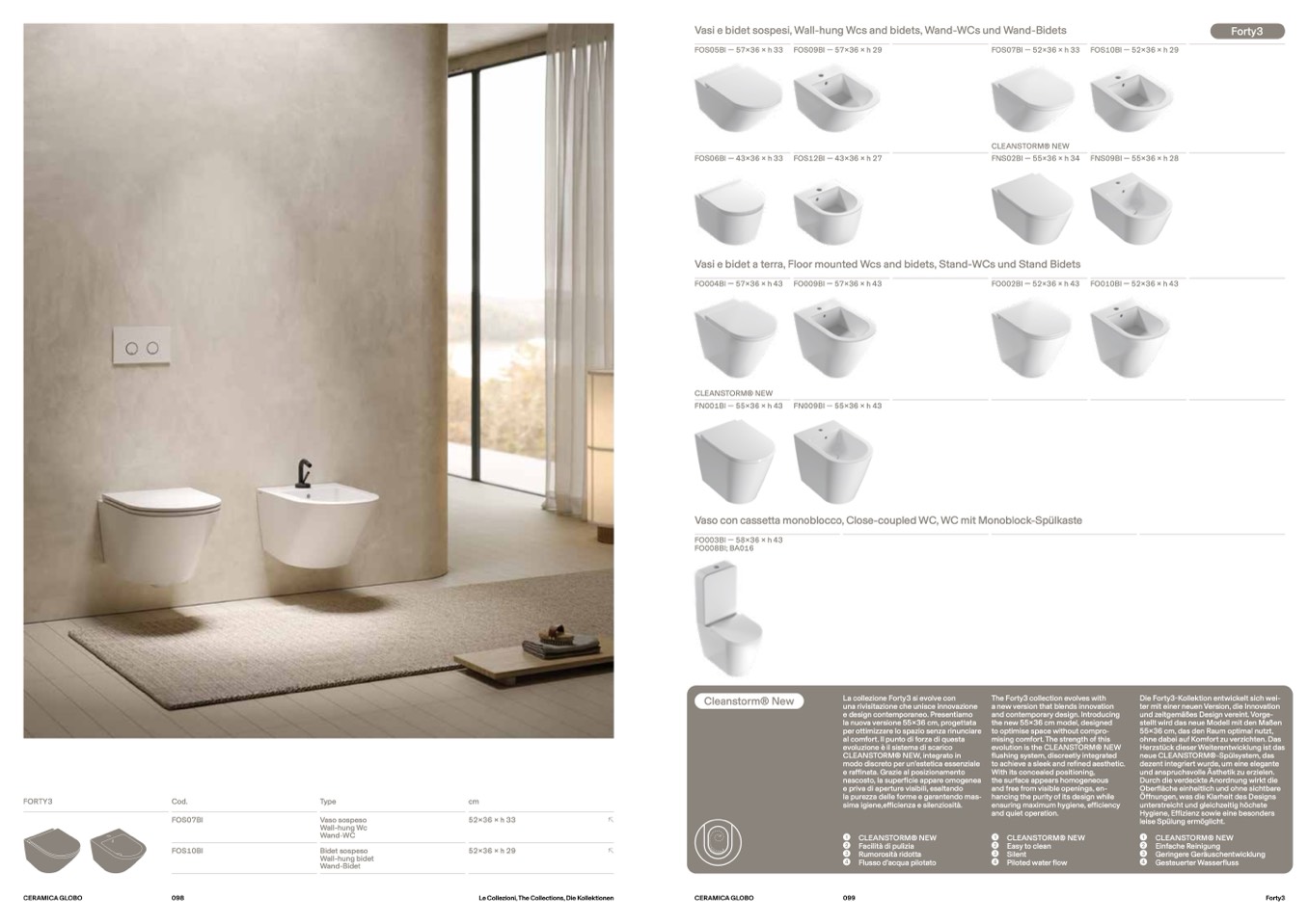 Vasi e bidet a terra, Floor mounted Wcs and bidets, Stand-WCs und Stand Bidets