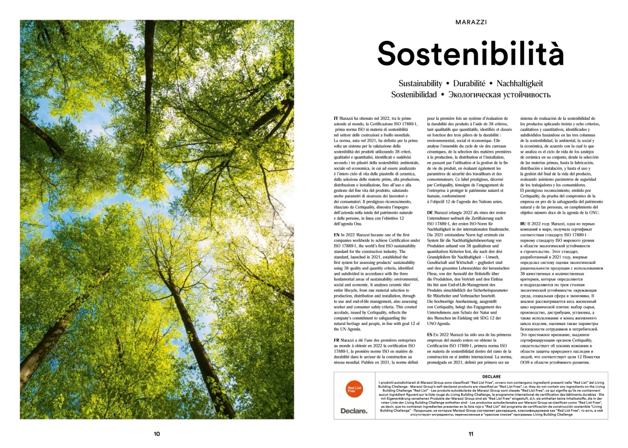 Building Challenge · Marazzi Group’s self-declared products are classified as “Red List Free”, i.e. they do not contain any ingredients on the Living