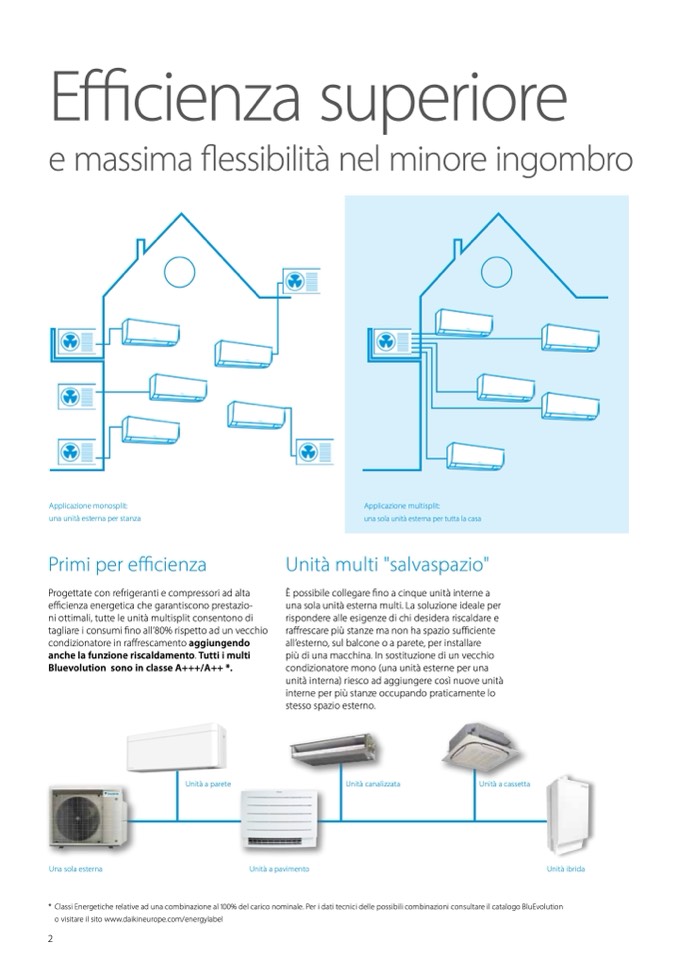 * Classi Energetiche relative ad una combinazione al 100% del carico nominale. Per i dati tecnici delle possibili combinazioni consultare il catalogo BluEvolution