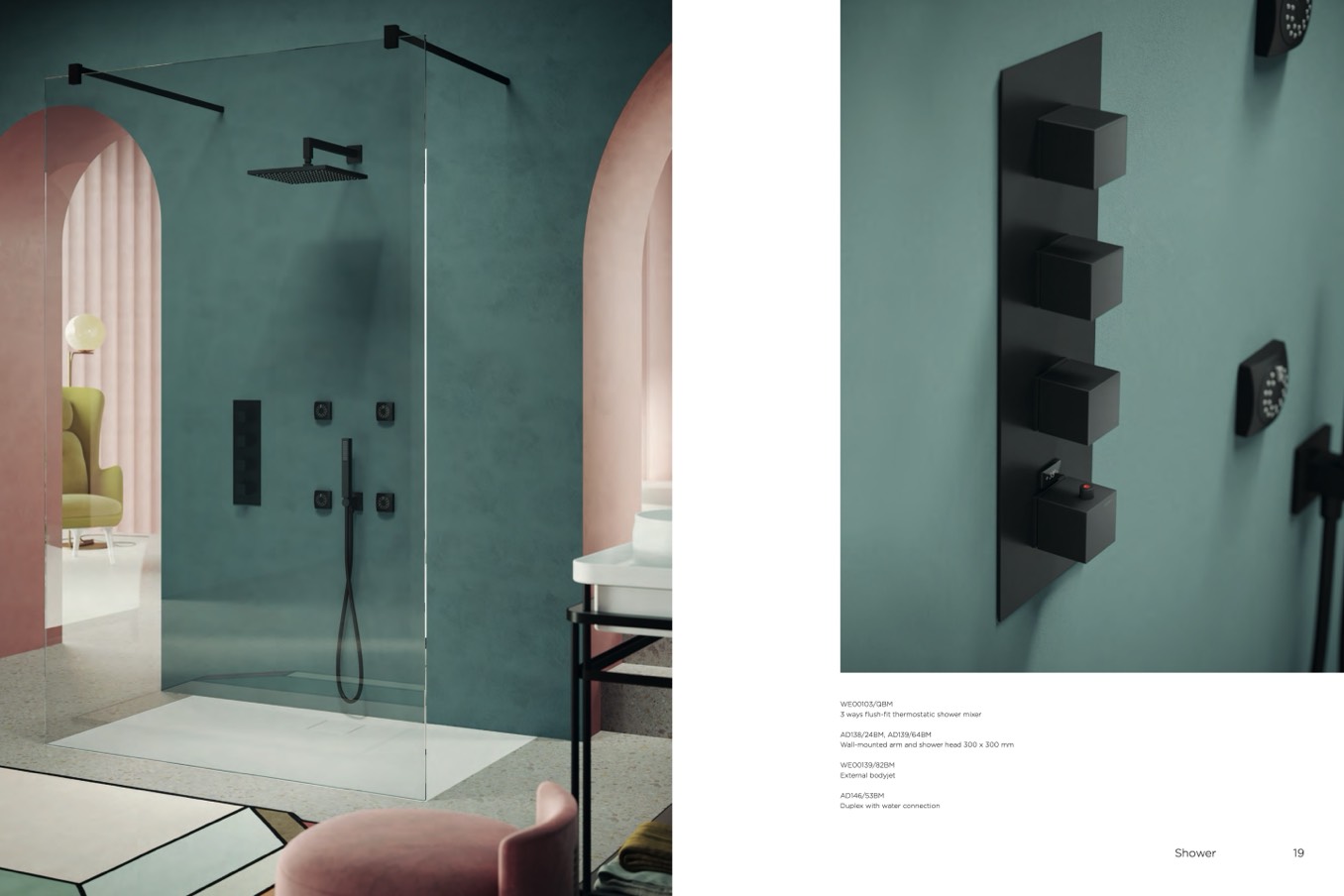 3 ways flush-fit thermostatic shower mixe