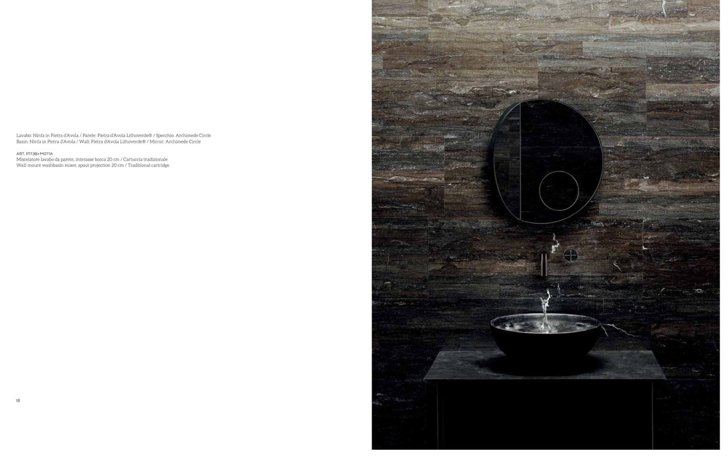 Basin: Ninfa in Pietra d’Avola / Wall: Pietra d’Avola Lithoverde® / Mirror: Archimede Circle