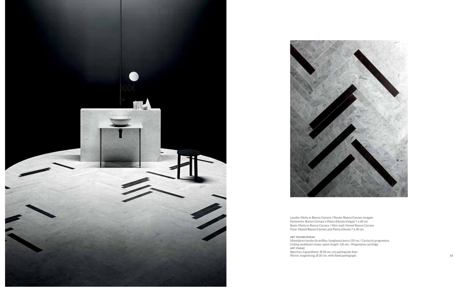 Lavabo: Ninfa in Bianco Carrara / Parete: Bianco Carrara levigato