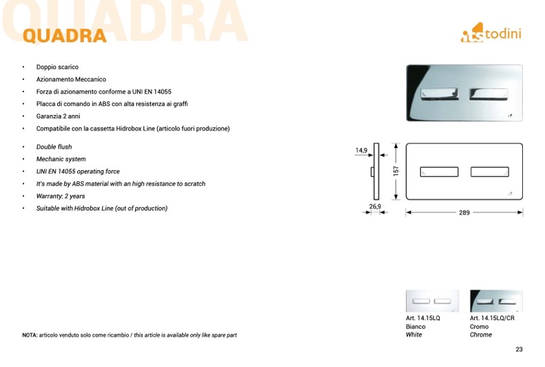 NOTA: articolo venduto solo come ricambio / this article is available only like spare part