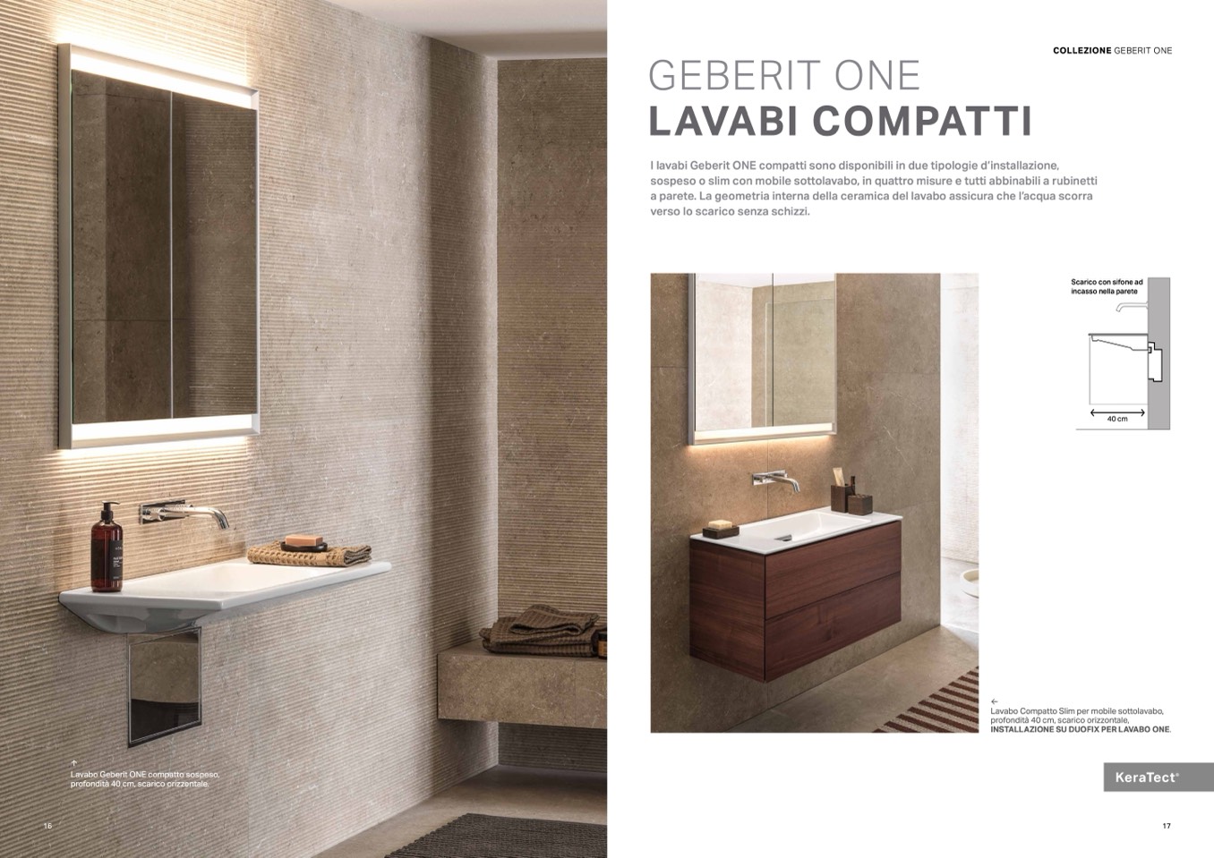 I lavabi Geberit ONE compatti sono disponibili in due tipologie d’installazione,