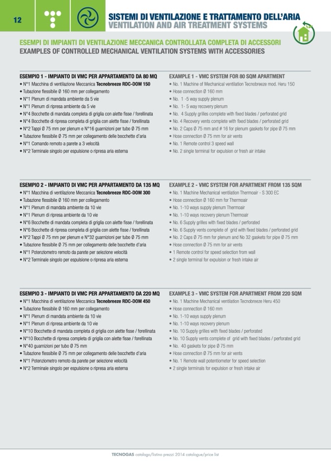 TECNOGAS catalogo/listino prezzi 2014 catalogue/price list