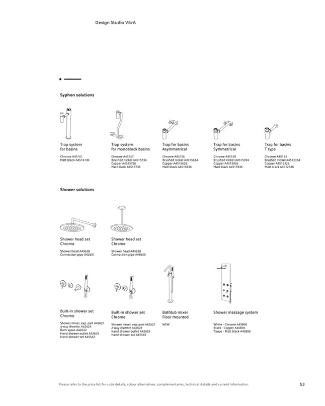 Please refer to the price list for code details, colour alternatives, complementaries, technical details and current information.