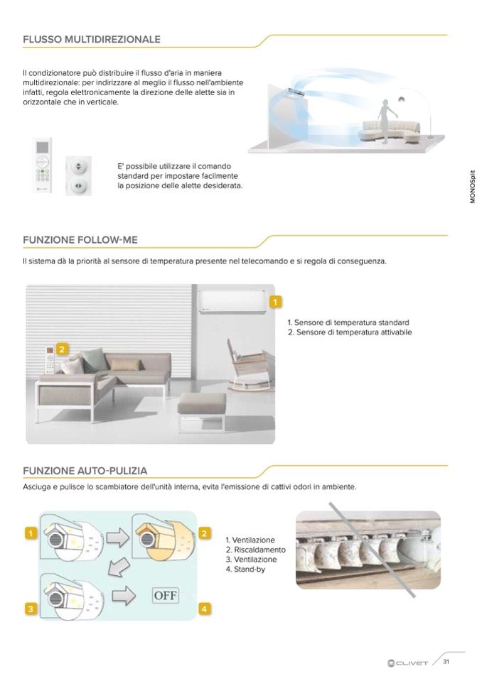 Asciuga e pulisce lo scambiatore dell'unità interna, evita l'emissione di cattivi odori in ambiente.
