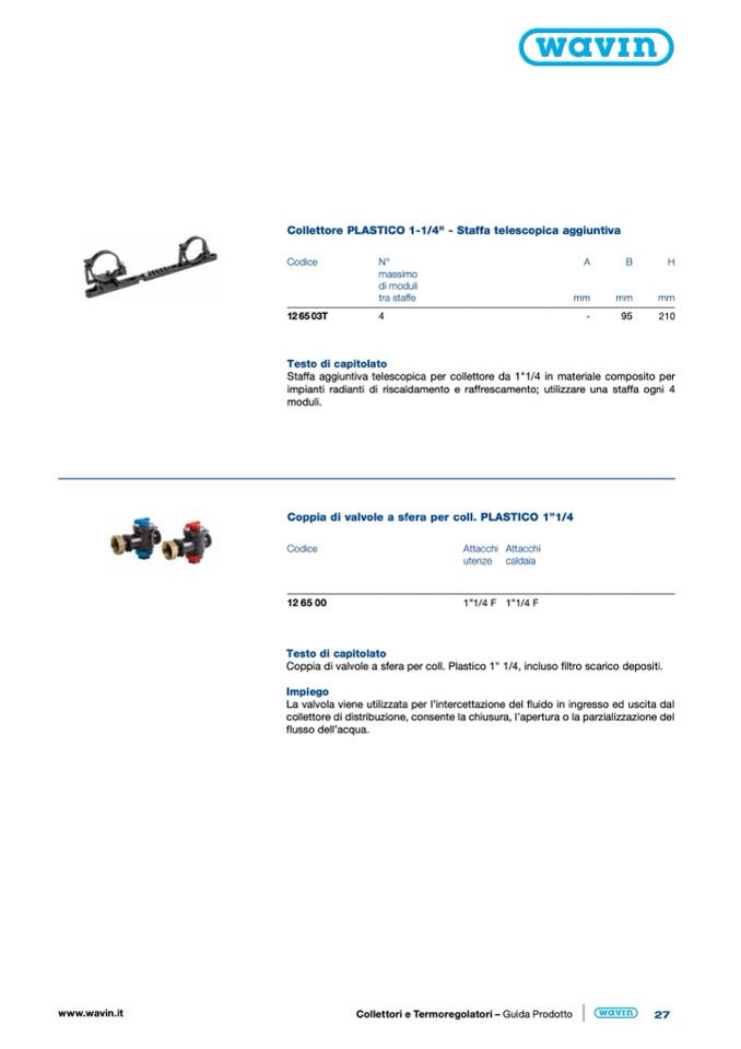 Collettore PLASTICO 1-1/4" - Staffa telescopica aggiuntiva