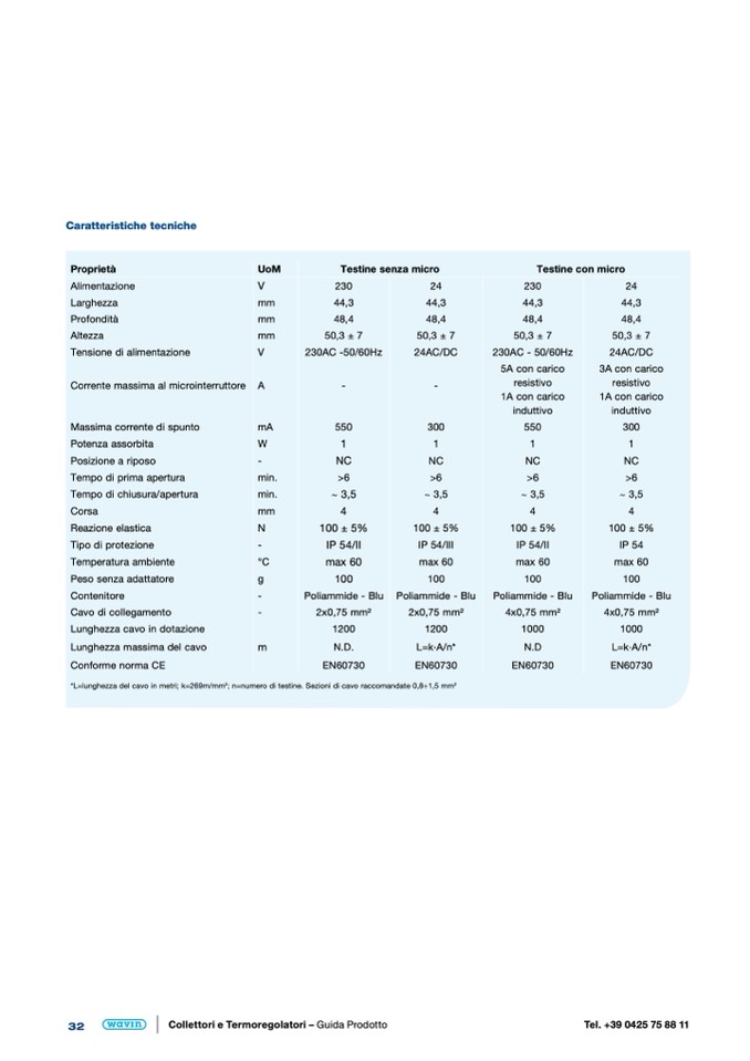 ; n=numero di testine. Sezioni di cavo raccomandate 0,8÷1,5 mm