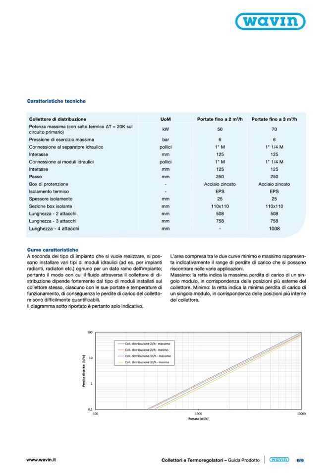 collettore. Minimo: la retta indica la minima perdita di carico di