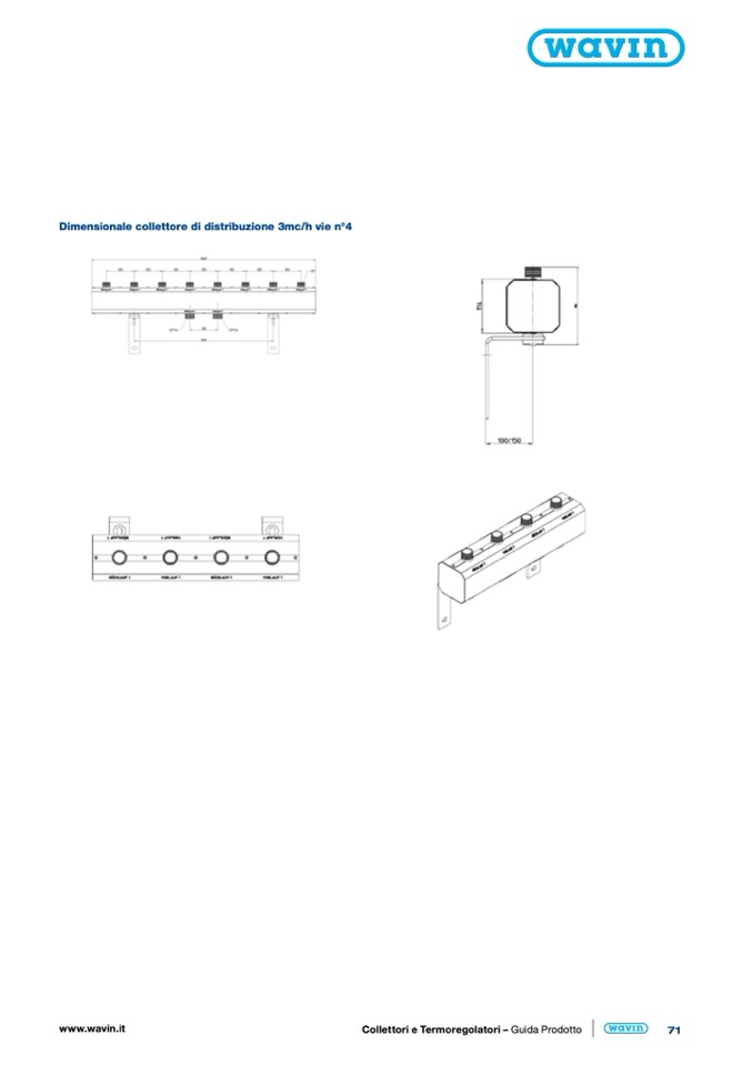 Dimensionale collettore di distribuzione 3mc/h vie n°4