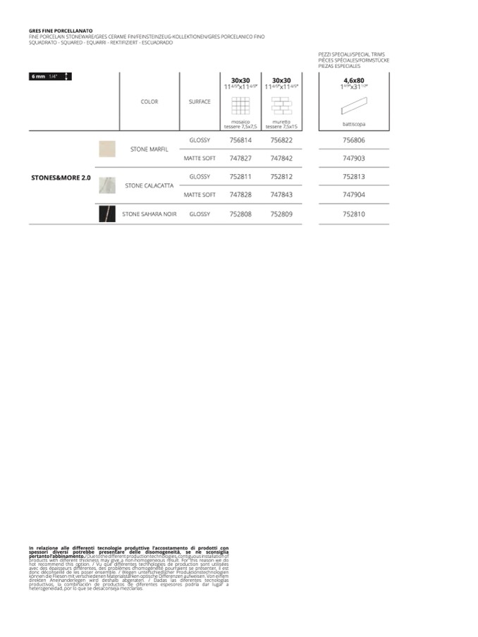 nto l’abbinamento./ Due to the different production technologies, contiguous installation o