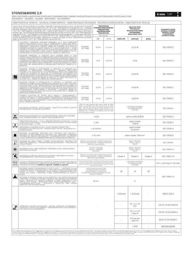 secondo i test di controllo previsti dalla norma EN 14411-ISO 13006 Appendice G gruppo BIa UGL. / Unglaze