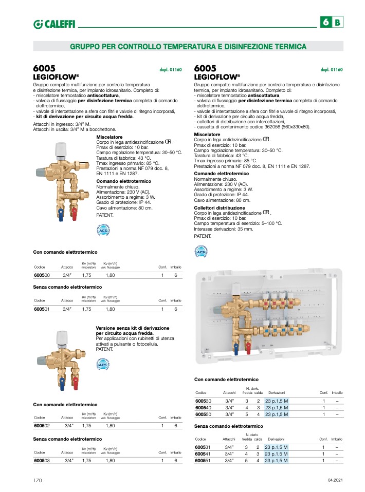 e disinfezione termica, per impianto idrosanitario. Completo di: