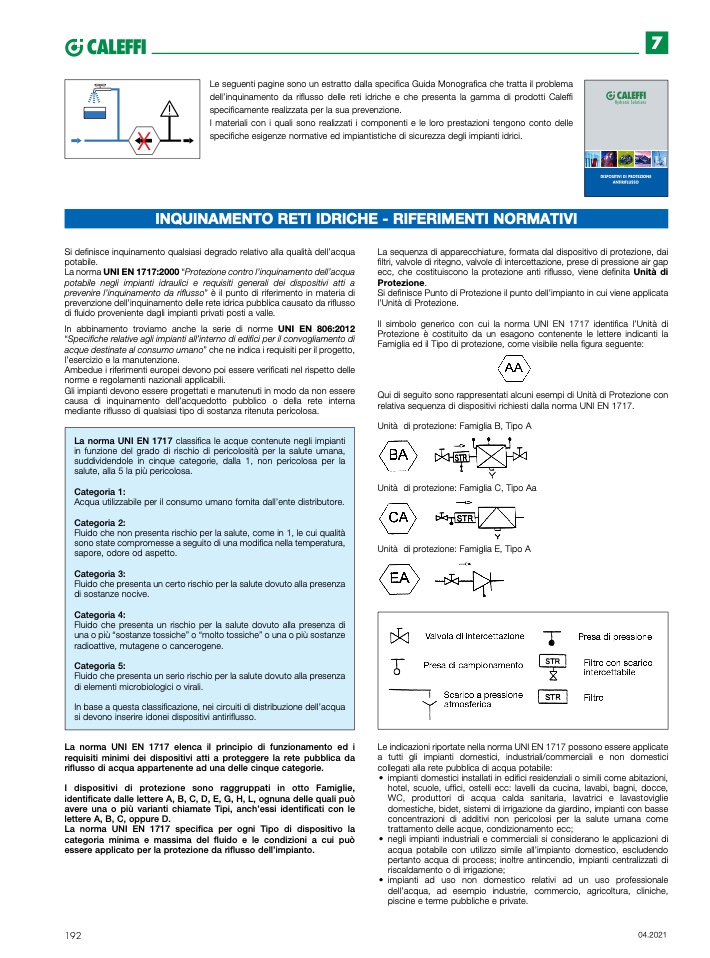 dell’inquinamento da riflusso delle reti idriche e che presenta la gamma di prodotti Caleffi