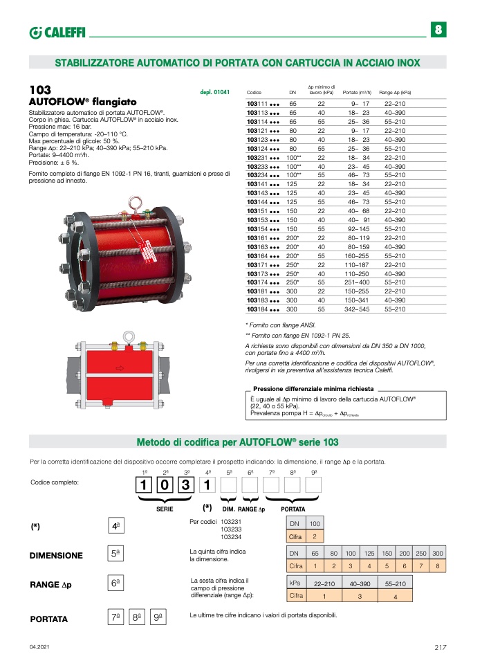 Le ultime tre cifre indicano i valori di portata disponibili.