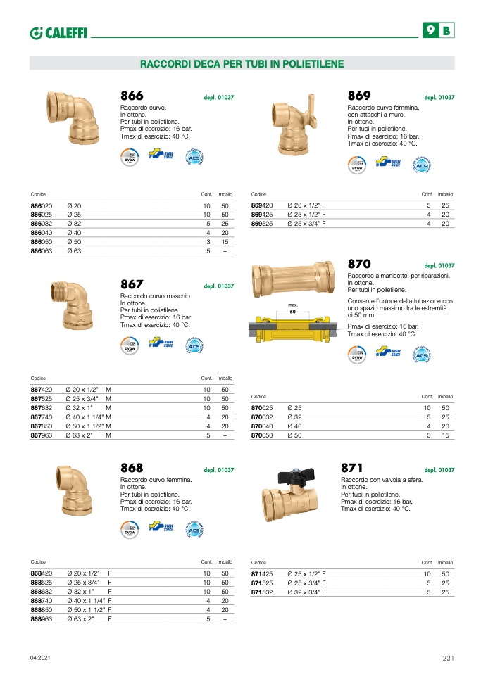 Pmax di esercizio: 16 bar.