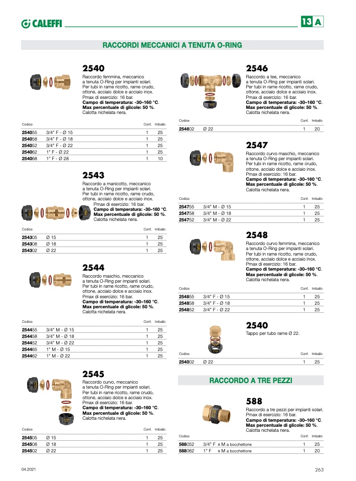 Raccordo a tre pezzi per impianti solari.