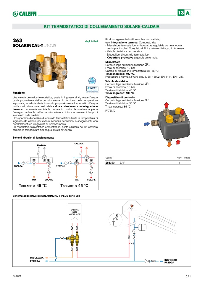 Schema applicativo kit SOLARINCAL-T PLUS serie 263