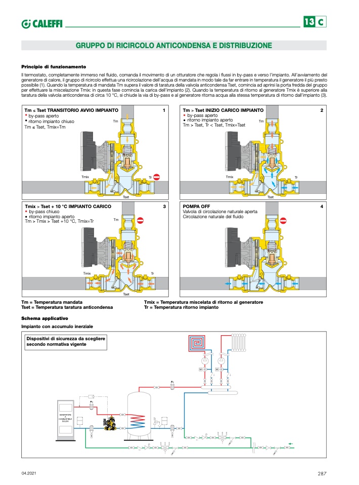 possibile (1). Quando la temperatura di mandata Tm supera il valore di taratura della valvola anticondensa Tset, comincia ad aprirsi la porta fredda del gruppo