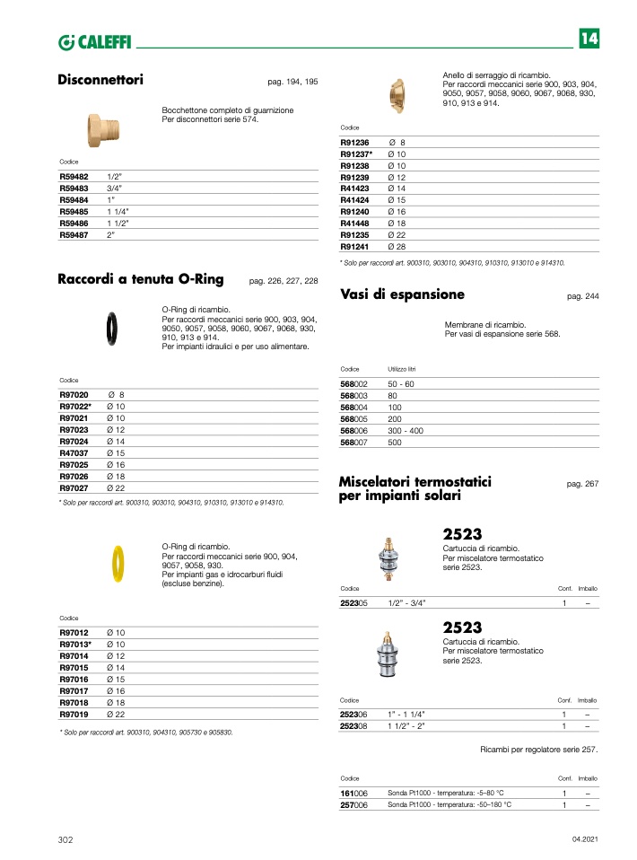 * Solo per raccordi art. 900310, 903010, 904310, 910310, 913010 e 914310.