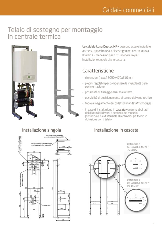 - possibilità di posizionamento al centro del vano tecnico