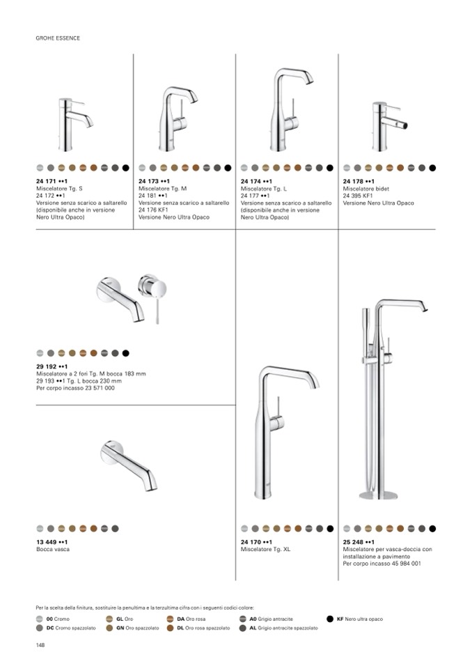 Per la scelta della finitura, sostituire la penultima e la terzultima cifra con i seguenti codici colore: