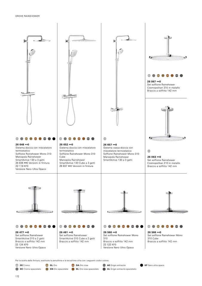 Per la scelta della finitura, sostituire la penultima e la terzultima cifra con i seguenti codici colore: