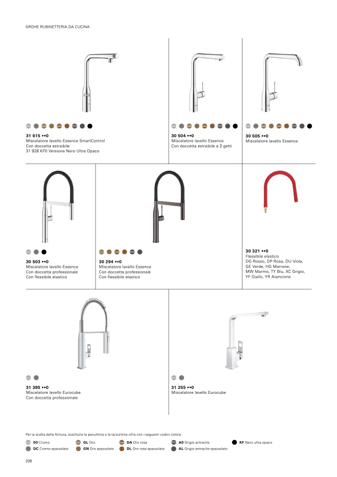 Per la scelta della finitura, sostituire la penultima e la terzultima cifra con i seguenti codici colore: