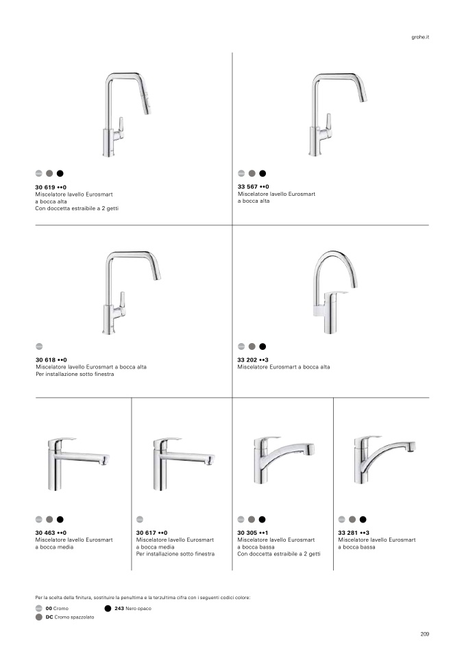 Per la scelta della finitura, sostituire la penultima e la terzultima cifra con i seguenti codici colore: