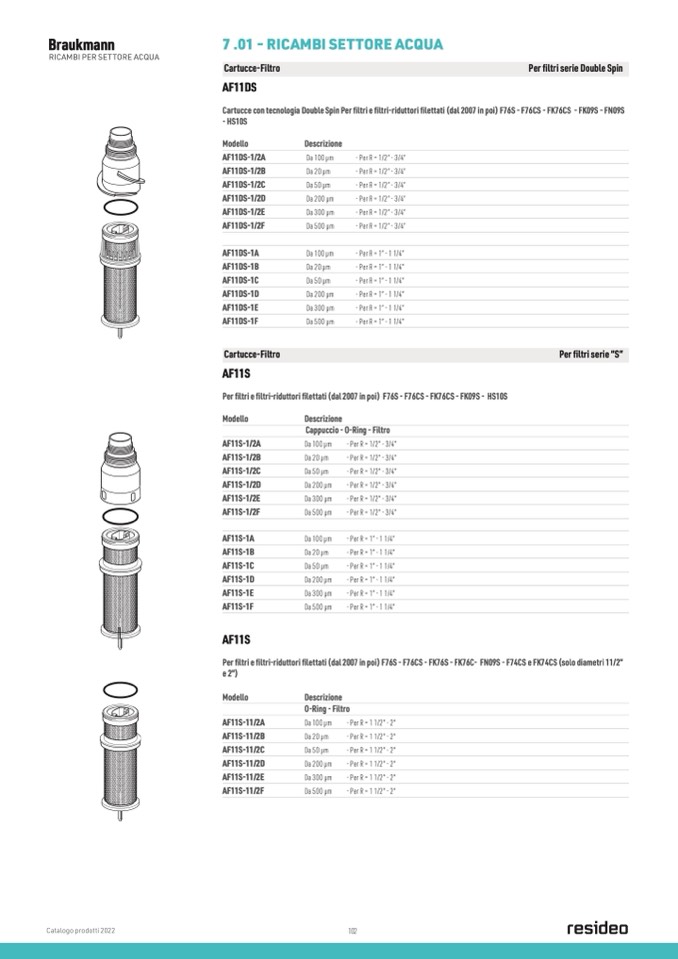 Per filtri e filtri-riduttori filettati (dal 2007 in poi) F76S - F76CS - FK76CS - FK09S - HS10S