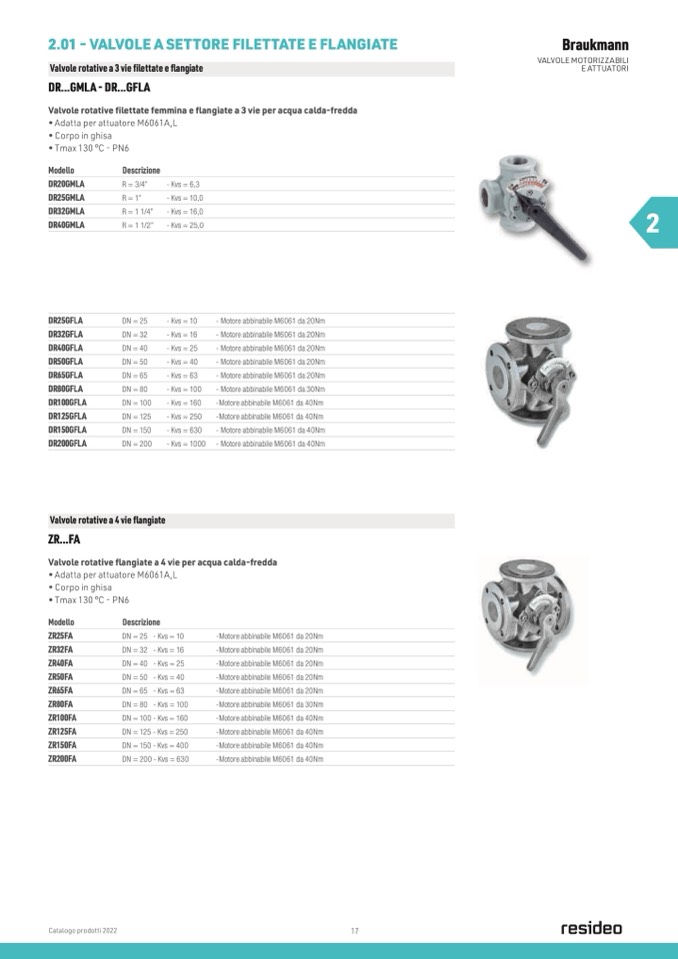 Valvole rotative filettate femmina e flangiate a 3 vie per acqua calda-fredda