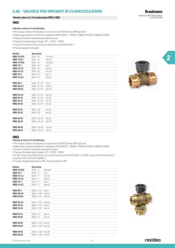 Valvole a sfera a 2 e 3 vie motorizzate VBG2 e VBG3