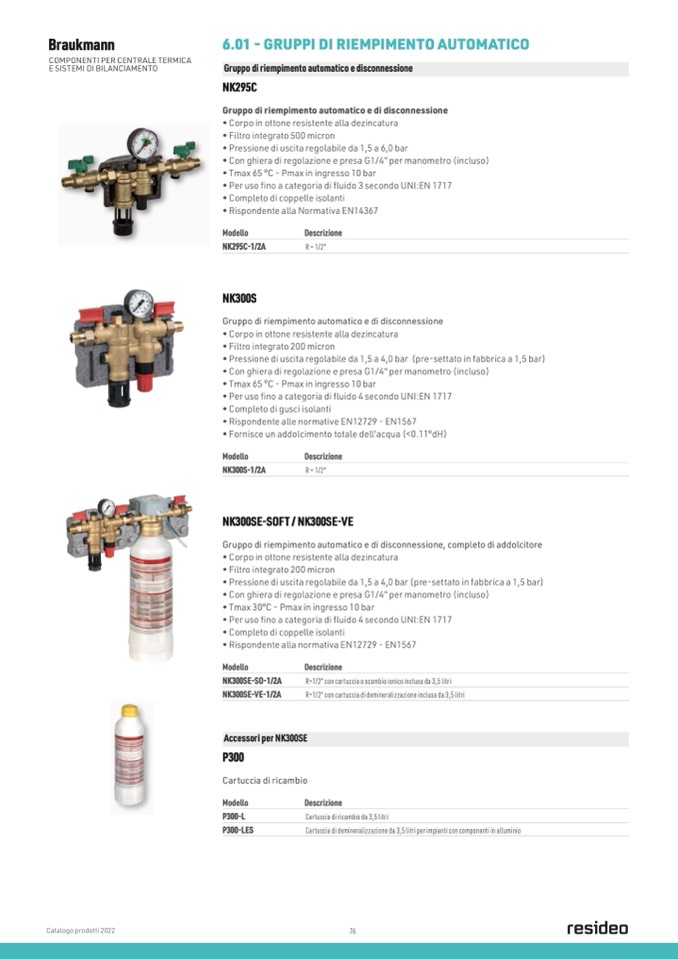 • Tmax 30°C - Pmax in ingresso 10 bar