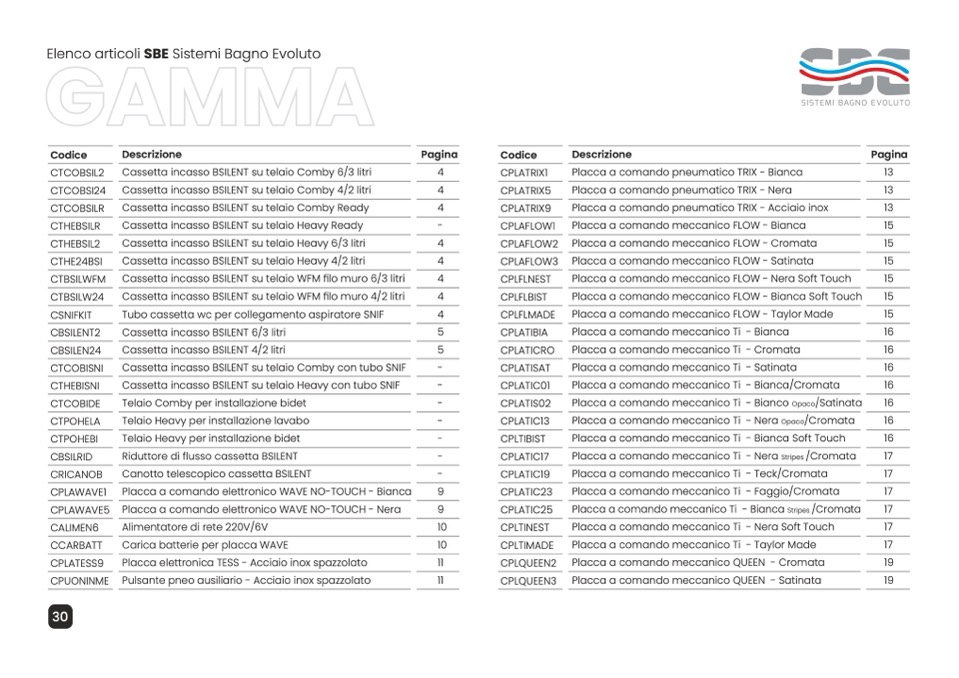 Elenco articoli SBE Sistemi Bagno Evoluto