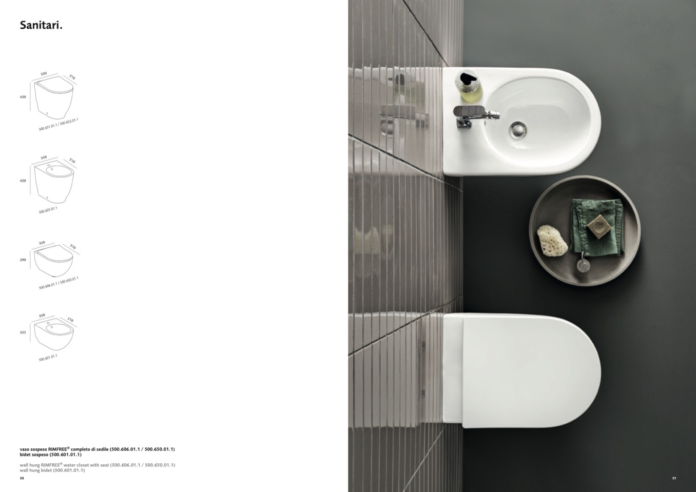 vaso sospeso RIMFREE® completo di sedile (500.606.01.1 / 500.650.01.1)