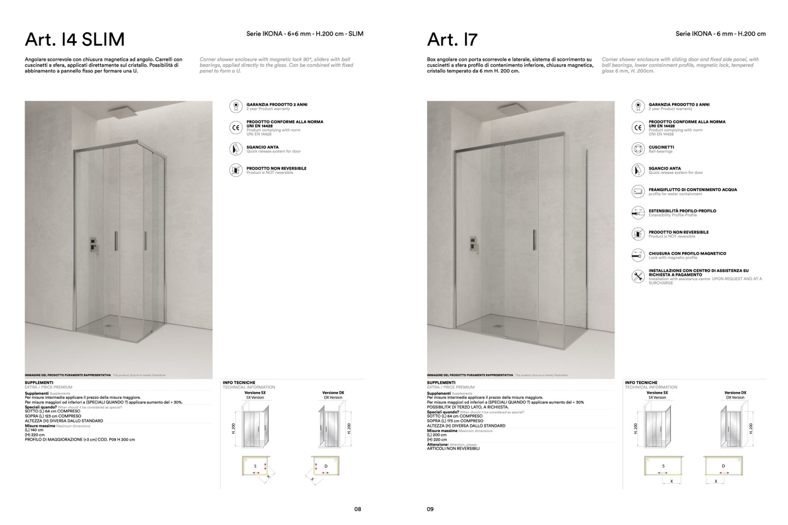 Box angolare con porta scorrevole e laterale, sistema di scorrimento su