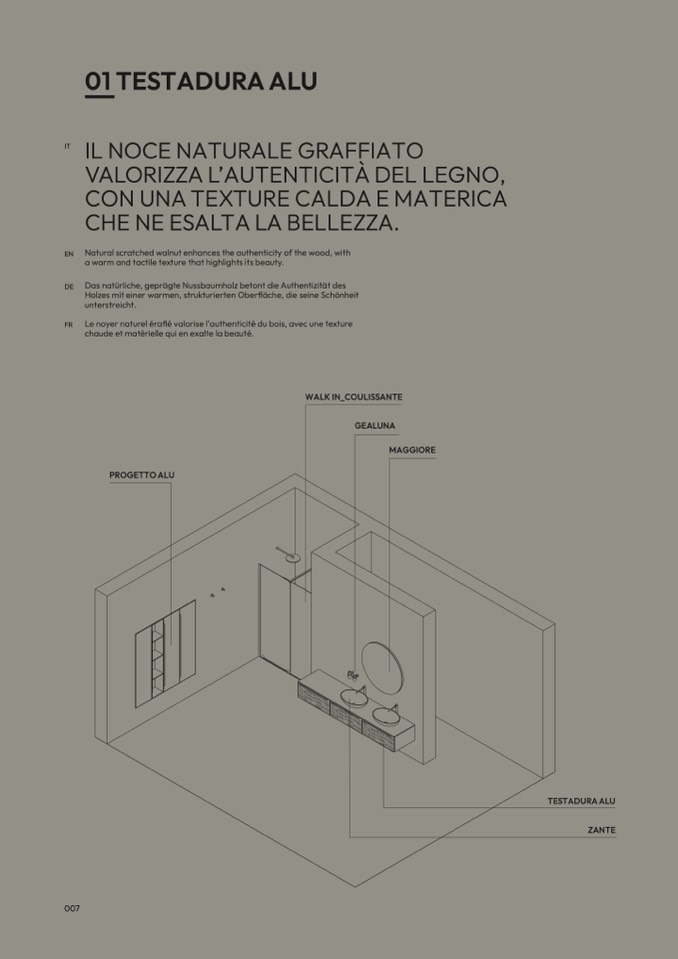 Natural scratched walnut enhances the authenticity of the wood, wit