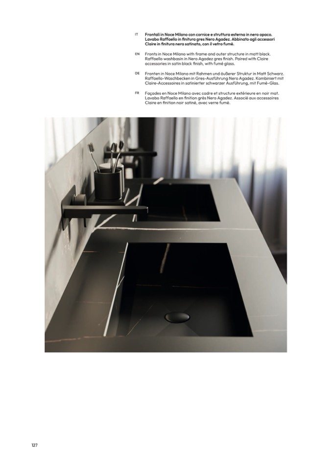 Raffaello washbasin in Nero Agadez gres finish. Paired with Clair