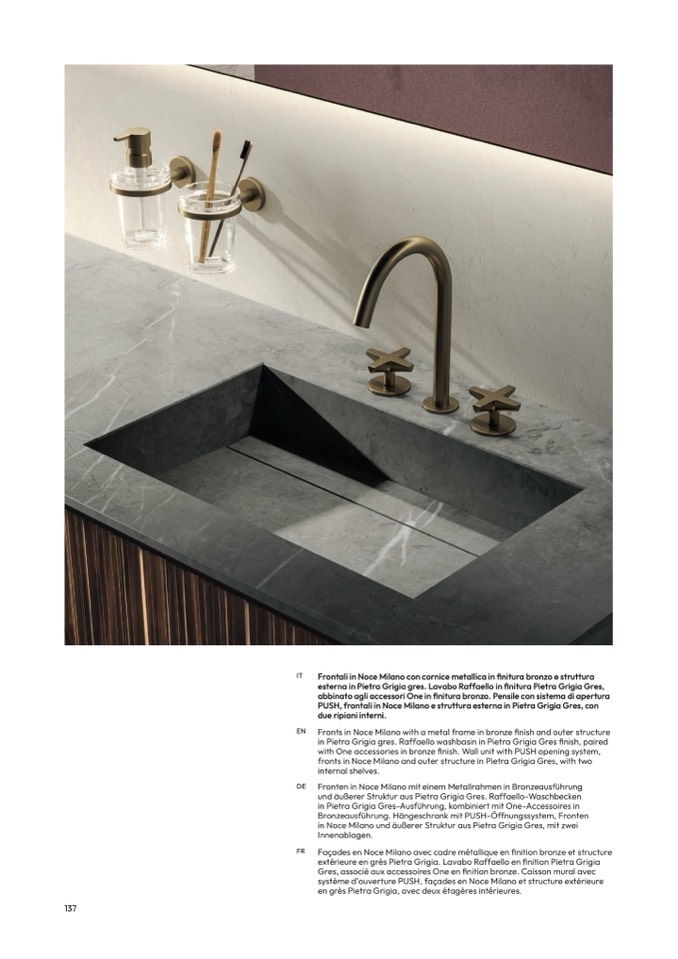 in Pietra Grigia gres. Raffaello washbasin in Pietra Grigia Gres