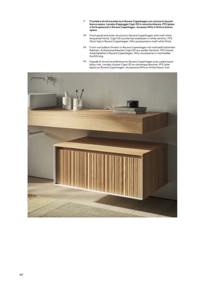 a forte spessore) in Rovere Copenhagen. Accessori Mito in finitura bianco