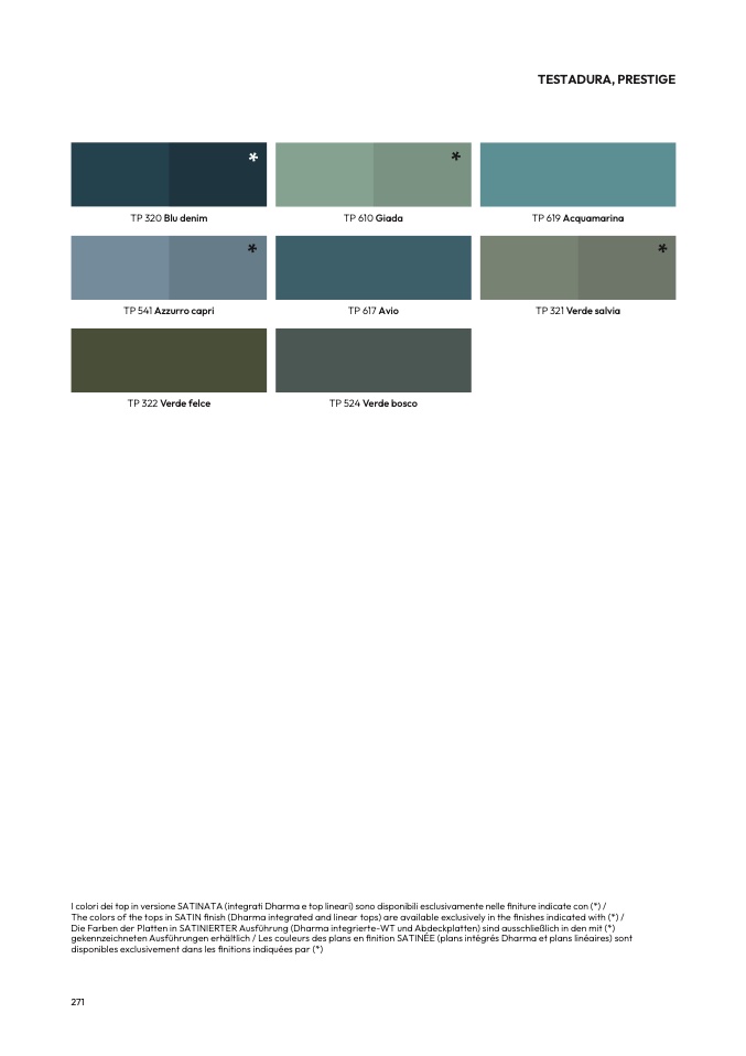 I colori dei top in versione SATINATA (integrati Dharma e top lineari) sono disponibili esclusivamente nelle