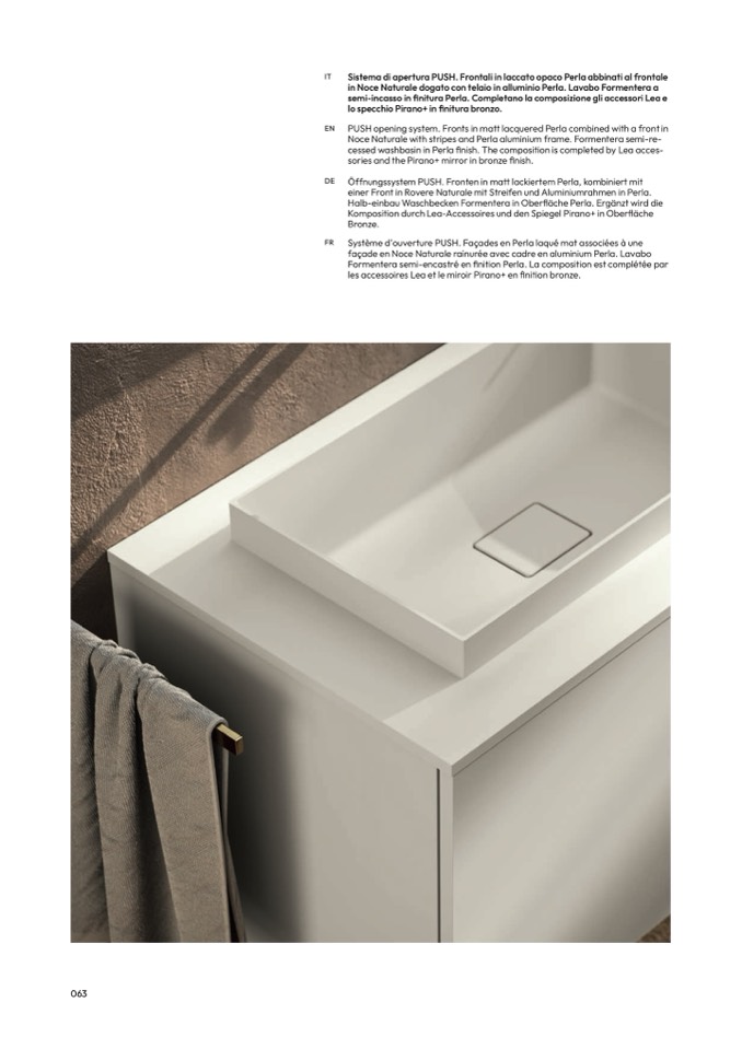 Système d’ouverture PUSH. Façades en Perla laqué mat associées à une